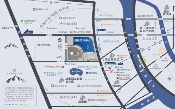 从区位来看,高新万科中心位于福州高新区与大学城双区交会地,项目周边汇聚福州大学、福建师范大学、福建工程学院(2023年更名为福建理工大学)等多所高等院校。